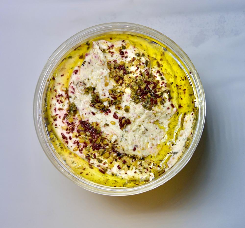 لبنة طازجة كريمية، مزجناها مع الزعتر البلدي الطازج ورشة من السماق الفاخر، وغمرناها بزيت زيتون أردني أصلي ومعصور على البارد.
